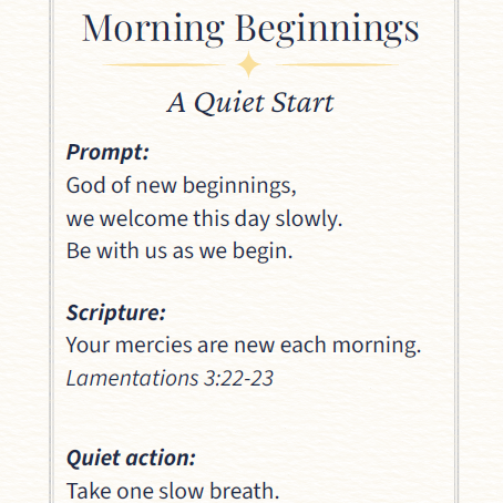 Resources that help faith become part of everyday life. These tools support gentle daily and weekly rhythms, offering prompts and practices that encourage reflection without pressure or overwhelm.